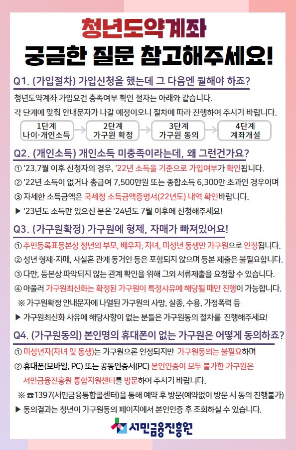 | 기타 유의사항 DGB청년도약계좌는 나이·개인소득·가구소득 요건을 충족한 국민인 개인(외국인 및 재외국민 제외)이 가입 가능합니다. 계약을 체결하기 전 반드시 상품설명서와 약관을 읽어보시기 바랍니다. |