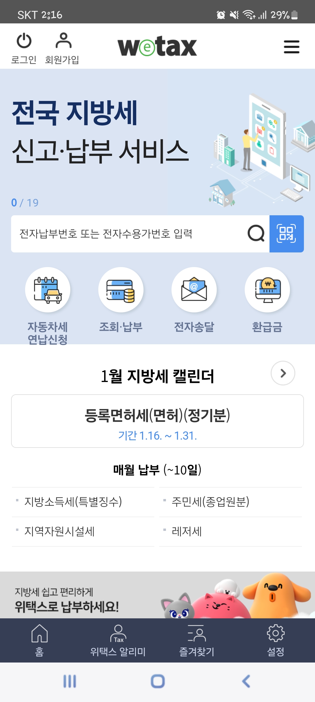 핸드폰으로 신청할 때에는 "위택스" 어플을 깔면 됩니다.
